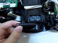 Using one hand, pinch the white plastic connector where the battery's wiring connects the POWERbot. Pull up to disconnect.