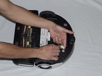 On the bottom of the bot, locate the battery lid along the curved edge of the bot.