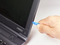 Insert the blue plastic opening tool into the bezel and rear housing of the screen.