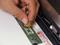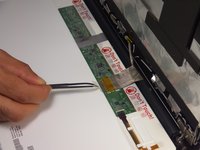 Remove the tape that secures the video connector to the LCD screen with tweezers.