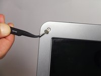 With the Phillips #0 screwdriver remove the six 3 mm screws, which mount the screen onto the base of the laptop.
