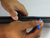 Using the blue plastic opening tools, wedge one in between the back panel and the laptop.