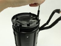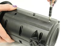 Remove the one (9.5mm x 1.6mm) PH1 Phillips screw on the left side of the speaker body.