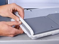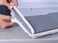 Use your hands to lift the bottom edge of the evaporator cover up to release the lower plastic tabs.