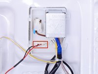Use your fingers to squeeze and disconnect the fan cable connector from the back wall of the freezer.