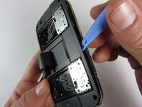 1) Use a plastic phone opening tool to pry out the piece from the front of the phone.