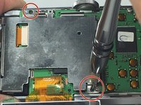 Under the LCD screen, remove the metal plate by removing the two 3mm screws holding it in place.