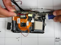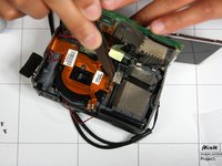 Slowly bend circuit board upwards (towards power button) until at 90 degree angle with remaining part of camera.