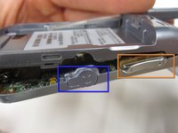 Locate the cover of the head phone jack. The cover is silver and circular and has a headphone image on the front of it. Open the cover to the headphone jack and peel it off the device. Do not lose this piece.