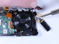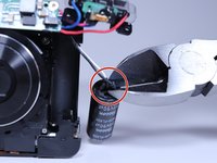 Pull the flash capacitor out of its compartment to expose the wires connected to it.