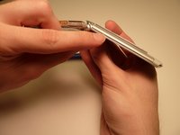 • Starting at the end, gently begin to pry the front casing away from the phone. Use the plastic opening tool for this step.