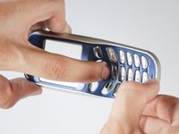 Rotate the phone onto its front side so that the LCD screen is facing away from you.