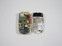 First, remove the 2 silver stickers (as indicated by the circles) with a a safety or push pin to reveal 2 screws.