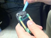 • Using a plastic opening tool, pry the speakers from the case. These are located at the top of the back of the phone.