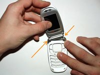 Slowly pry the hinge from the body, as shown in the second picture. Set the phone down after when finished with this step.