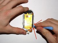 Use a plastic opening tool to pry the display screen from the cell phone cover.