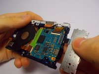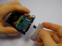 Remove the Phillips head screw from the rear panel control board to reveal the LCD's connection to the motherboard.
