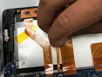 With your opening tool, remove the circuitry from off the main screen, thus separating the screen from the tablet completely
