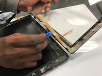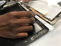 With the back panel now removed, wedge the opening tools in between the actual tablet and screen and move it around parameter until you have loosened the adhesive keeping it together.