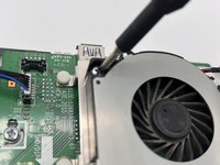 Carefully detach the cable from the fan to the circuit board by pulling on the cable connecting the fan to the circuit board.