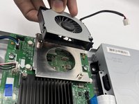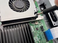 Remove both 10 mm screws from the fan using a Phillips #0 screwdriver.