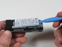 With the plastic pry tool, gently lift up. The battery should lift up and out.
