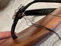 Pull the thread so that the ornament is tight against the sandal.