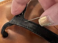Run the needle back through the sandal strap, then tie a knot at the base of the thread.