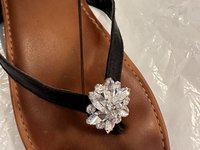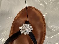 An awesome sandal lost its sparkly ornament. Its mate still sparkles and looks super-cute—save the sandals! You can find a replacement ornament or brooch at a hobby or craft shop, and using basic sewing skills, you can attach a replacement. Be careful if you're a novice—needles are sharp!