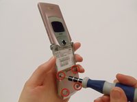 Unscrew the 4.4mm screws at the top of the phone with the Tri-wing Y0 Screwdriver.