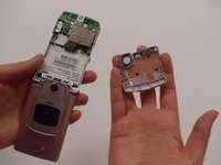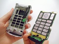 Open the phone and firmly hold the phone casing with one hand and push the motherboard out of the case with the other by pushing on the keys.