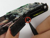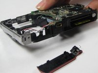 Gently lift up on the left side of the LCD and slowly pull it to the left side of the camera but do not remove entirely, there is a ribbon connector.