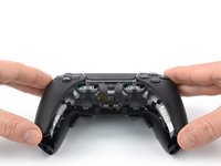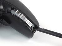 At the bottom tip of the left grip, insert the flat end of a spudger or a clean fingernail between the faceplate trim and the back cover.