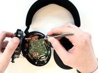 On the right ear piece, insert an opening tool into the gap between the ear pad and the driver housing.