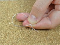 Tie a second regular knot over the first one to make it bigger. You don't want the thread slipping right through the grain of the fabric.
