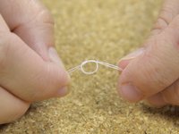 Leave some slack in the thread and draw the needle through the loop created by the slack.