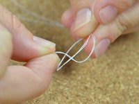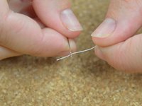 Let the needle slide down the thread until it hangs at the center. You should have two equal lengths of thread on either side of the needle.