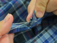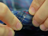 Replacing a button is one of the most common clothing repairs. Fortunately, it's also one of the easiest. This guide will show you how to reattach a standard four-hole button with a needle and thread. In this guide we're using contrasting thread for visibility, but when it comes time to do your actual project, you'll want to use thread that matches the color of your fabric.