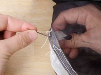 When you come to the end of your material, draw the needle in between the two layers of material, under the thread of the closest stitch.