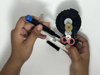 Using the Phillips #0 screwdriver, remove the two 4mm screws holding the motor to the gearbox.