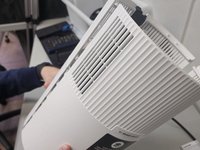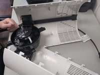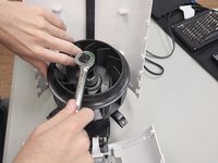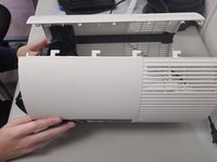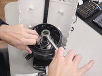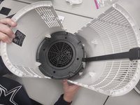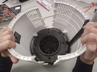 Unscrew the one 1.2 cm screw holding the grate at the top with a TR10 Torx screwdriver.