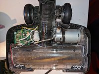 • Replacing the LEDs, Brush Motor, and Brush roll is possible with further dissasembly. There is also a microswitch to detect if the unit is snapped upright that shuts of the brushes. This can also be easily replaced once torn down this far.