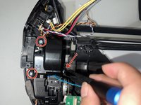 Use a Phillips #1 screwdriver to remove the three 12 mm screws that hold the right wheel in place.