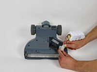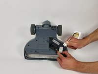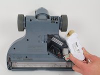 Disconnect the battery from the vacuum by pinching the white latch and pulling the two pieces apart.