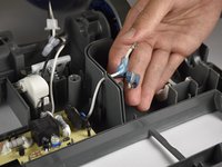 Remove the white wire from the pass-through hole in the divider of the motorized floor brush compartment.