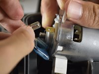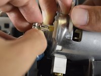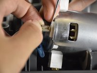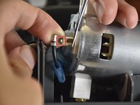 Pinch and pull the blue plastic insulation down the wire and away from the motor until the metal connectors are fully exposed.