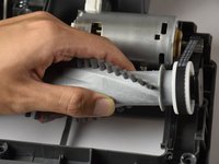 Take one side of the black roller brush belt off by pulling it over the end of the roller brush with your other hand.