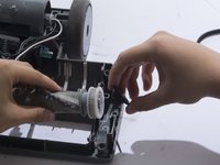 Remove the small front wheels with a metal spudger by inserting the metal spudger in front of the wheel and slowly prying up. This will free the wheel and reveal the screw beneath it.