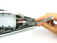Remove two 12.0 mm Phillips head #2 screws on the top and then pull back the black foam to reveal and remove the third 12.0 mm Phillips head #2 screw.