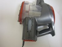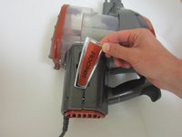 Place the vacuum on its side and locate the orange clips that say "Rocket" on each side of the vacuum.